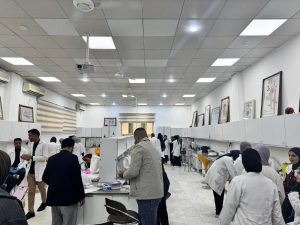 برعاية السيد عميد كلية الطب المحترم الدكتور زيد علي مجيد، وبإشراف  م.م. أحمد عدنان عباس ، أقامت كلية الطب / جامعة المثنى وبالتعاون مع دائرة صحة المثنى / مصرف الدم الرئيسي، يوم الاثنين المصادف 8/12/2025 في مختبر المهارات السريرية  الحملة الكبرى للتبرع بالدم لرفد المصرف بمخزون دم يسهم في إنقاذ حياة المرضى المحتاجين.و بمشاركة فعالة من قبل  جامعة الامام الصادق (ع) قسم المختبرات الطبية في حملة التبرع بالدم الكبرى والرابعة والمقامة في كليتنا  سنويا حيث قام كادر من الاساتذة والطلبة بعمل العديد من التحاليل مختبرية وفحوصات الدم للمتبرعين مجانا وهذه تعتبر من البوادر الانسانية الاكثر من رائعةبحضور  كل من:د. ضياء عبد الأمير – رئيس فرع جامعة الإمام الصادق (ع)  و .د. أحمد شايع – رئيس قسم المختبرات الطبية و . د. خالد گاني – منسق الحملة وأستاذ في قسم المختبرات الطبية.وجاءت مشاركتهم بصفة داعمة ومساندة للحملة، مما يعزز التعاون بين المؤسسات الأكاديمية داخل المحافظة.وشهدت الحملة حضورًا واسعًا من الكادر التدريسي والوظيفي في كلية الطب، إضافة إلى مشاركة فعّالة من طلبة الكلية في مختلف المراحل، مما يعكس مستوى الوعي والمسؤولية الإنسانية لدى الأسرة الجامعية.وتهدف الحملة إلى نشر ثقافة التبرع بالدم داخل المجتمع الجامعي وتعزيز القيم الإنسانية الداعمة للجهود الطبية ولإنقاذ حياة المرضى وفي ختام الفعالية، تتقدم كلية الطب بالشكر والامتنان لكل من ساهم في إنجاح هذه الحملة، ولكل متبرع قدّم دمه لإنقاذ حياة أو شفاء مريض، وكذلك الشكر موصول إلى الكادر الطبي على جهودهم الإنسانية والمهنية.
