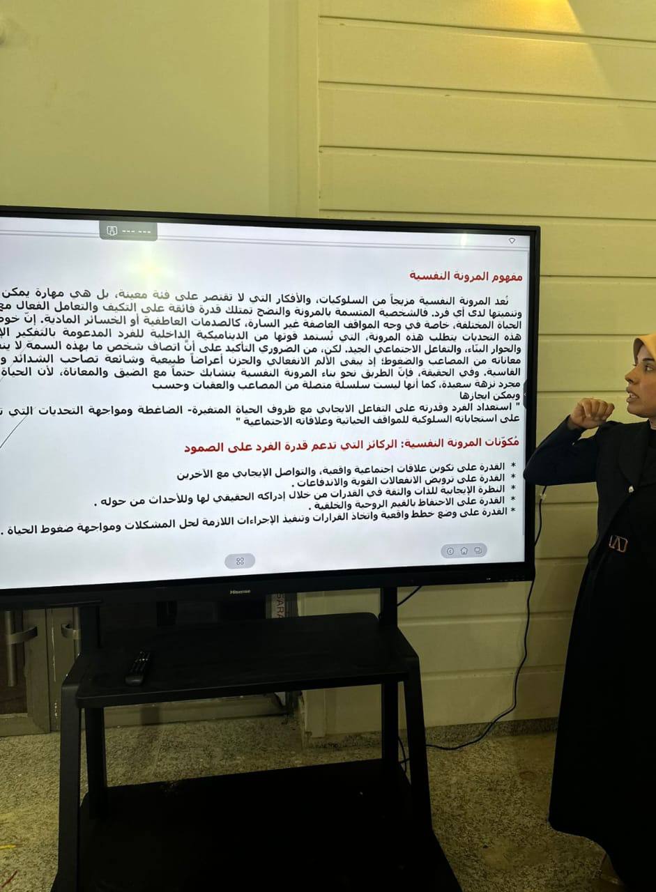 برعاية السيد رئيس جامعة المثنى أ.د. حسين كامل المحترم ، وبأشراف السيد عميد كلية الطب أ.م.د. زيد علي المحترم ، أقامت كلية الطب بالتعاون مع وحدة التعليم المستمر دورة تدريبية بعنوان (المرونة النفسية.استراتيجيات للتغلب على ضغوط العمل ) حاضر فيها م.م اقتدار محسن ، م.م هالة فاهم للمدة من 9-16 -11-2025 في تمام الساعة التاسعة صباحاً على قاعة التعليم المستمر وبحضور مجموعة من الكادر التدريسي والوظيفي للكلية ، وظف النشاط للتعريف بالمرونة النفسية، وابراز دورها الفعال في مواجهات ضغوط الحياة المختلفة ووسائل تنميتها ، ولم تخلو أهدافه من تزويد المشاركين بالأساليب الفعالة لرفع مستوى المرونة النفسية ، وتمكينهم من تحويل ضغوط العمل إلى محفزات للتطور ، من خلال تطبيق استراتيجيات متقدمة في التكيف الإيجابي والمرونة الذهنية ، ولضمان الفائدة المرجوة تم قياس مدى استيعاب المشاركين من خلال امتحان نهائي ، أظهر نجاحهم في إتقان هذه المهارات الحيوية.