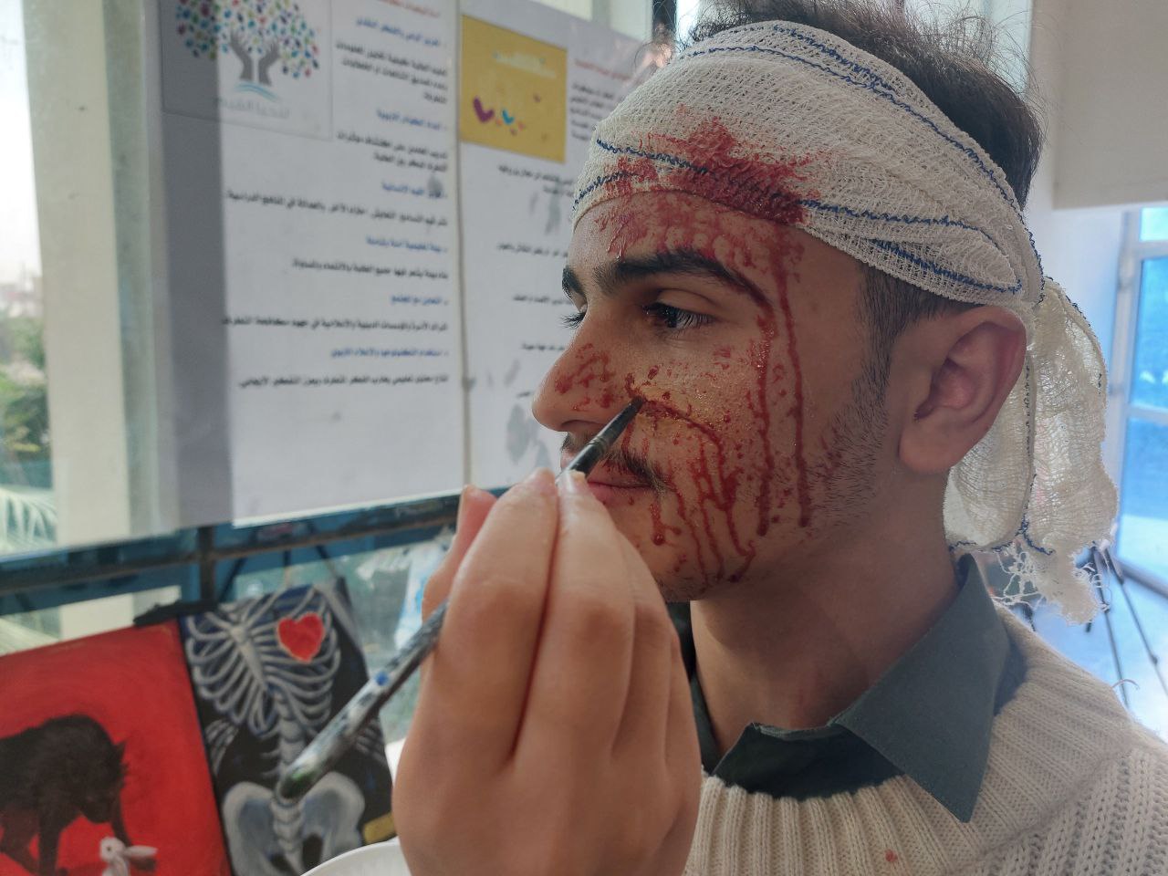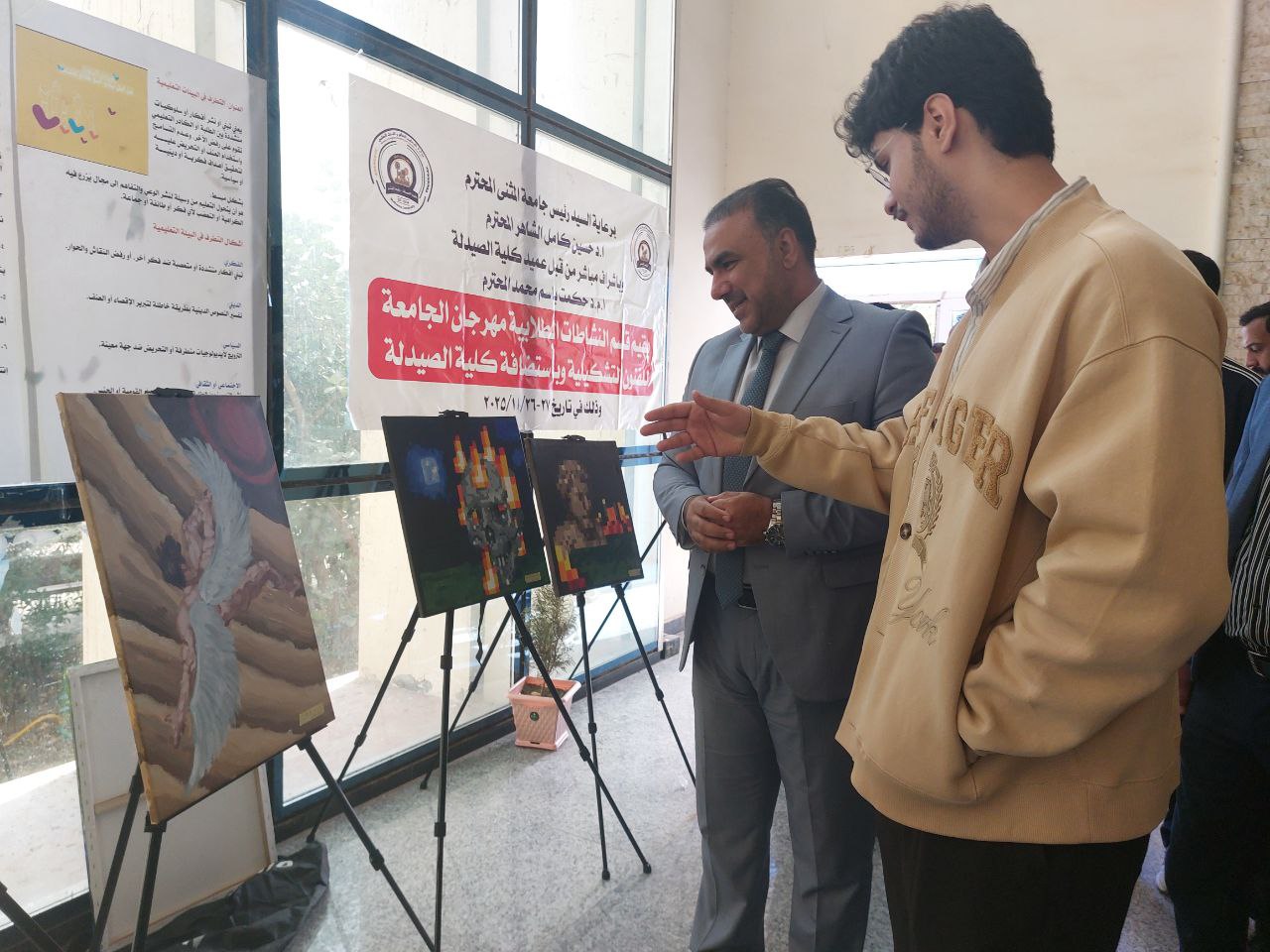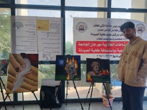 برعاية السيد عميد كلية الطب المحترم ا.م.د. زيد علي مجيد .شاركت الوحده الفنية / شعبة النشاطات الطلابية التابعة لكلية الطب / جامعة المثنى في مهرجان الجامعة للفنون التشكيلية بلوحات فنية بمشاركة خمسة من طلبتها الموهوبين، حيث قدّموا مجموعة من الأعمال الفنية التي تعكس قدراتهم وإبداعهم. في صورة جميلة تجمع بين صرامة العلم ودقة الطب وبين حسّ الفن ورقّة الإبداع.وتبرز هذه المشاركة المعنى الحقيقي لتميز الطالب الجامعي، فـ طالب الطب الذي يرسم يجمع بين مهارة العقل ومهارة اليد، بين إنقاذ الحياة وبين التعبير عن الجمال، وهذا ما يجعل إبداعه مختلفاً ومميزاً .وتميّز الطالب (ياسر عماد / مرحلة السادسة ) بحصوله على المركز الثالث على مستوى الكليات المشاركة، ليكون إنجازه فخراً لكليتنا.كما ضمّت مشاركة الكلية بقية الطلبة: